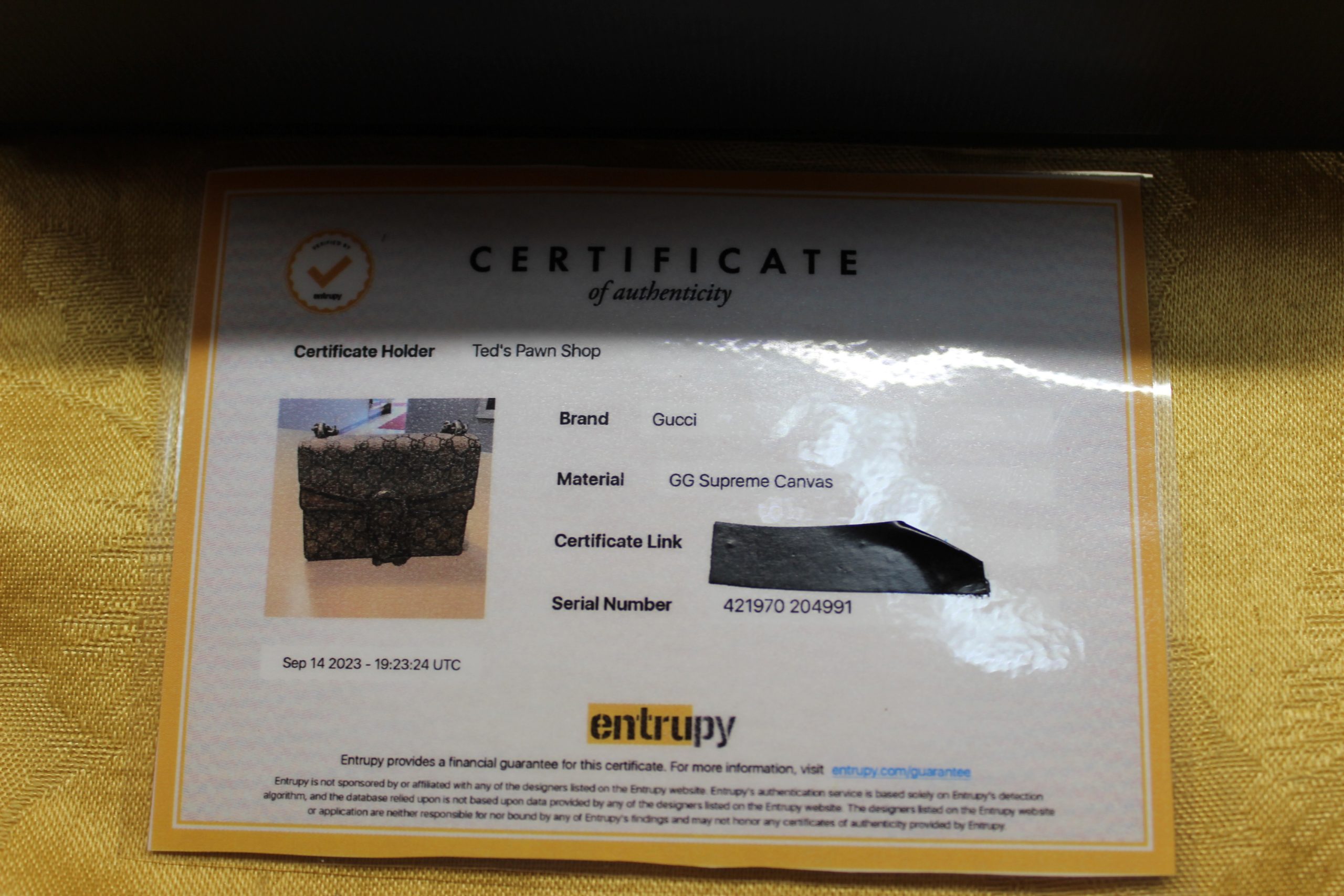 For sale is a preowned Gucci Dionysus mini bag in GG Supreme canvas. It is in excellent condition and comes with the original dust bag and box. It has a certificate of authenticity provided by Entrupy. Retail on this bag is $2400.